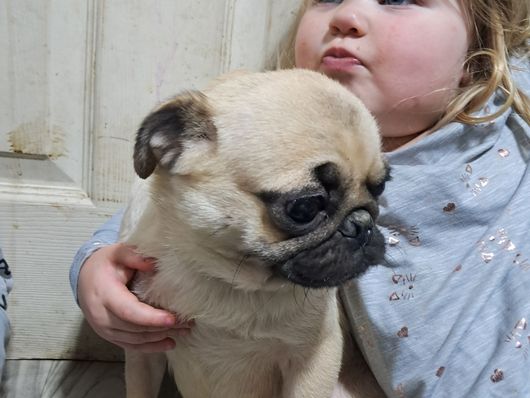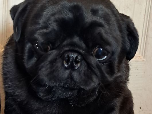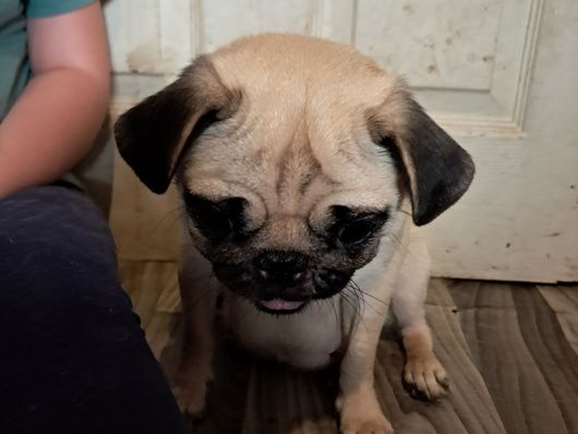 Pebbles is a female Pug. Carefully selected as a great representative of her breed, Laura decided to make her part of their program. Laura has passed Good Dog’s screening process, which involved a review of their breeding practices, environment, and the mental and physical health of their dogs.