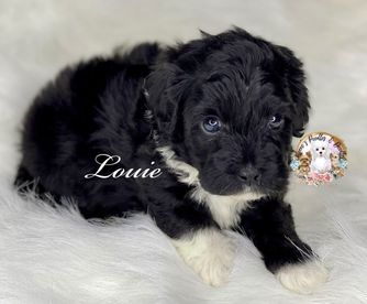 Our Bernedoodle puppies include brown and white, brown, black, black and white, tri-color, phantom, blue merle, and merle. Yorkipoo puppies include merle, silver, blue and tan, black and tan, and black. Colors will vary depending on the parent dogs.