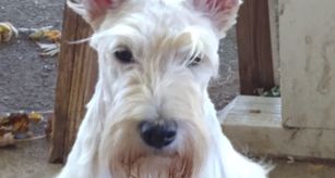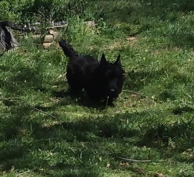AKC Registered . Bonnie is a loving lap dog. She shows that Scottie gate when running. Bonnie has the white ring around her tail . She loves to play with her red ball .