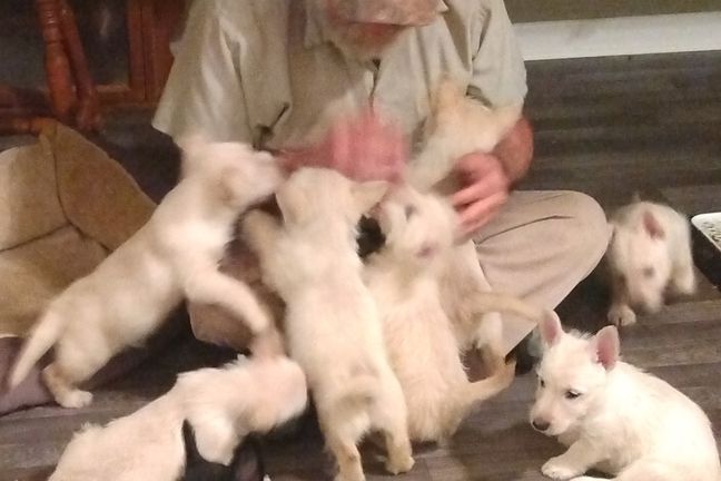 We make sure puppies are warmed and have all shots. Vet checked before they go to their new family. Puppies are loved. Our female is bread only once in a year. Our dogs are very friendly and loving. When you come to our home they believe you come to love on them.