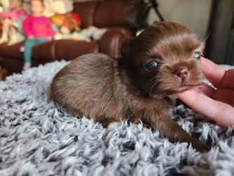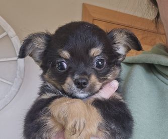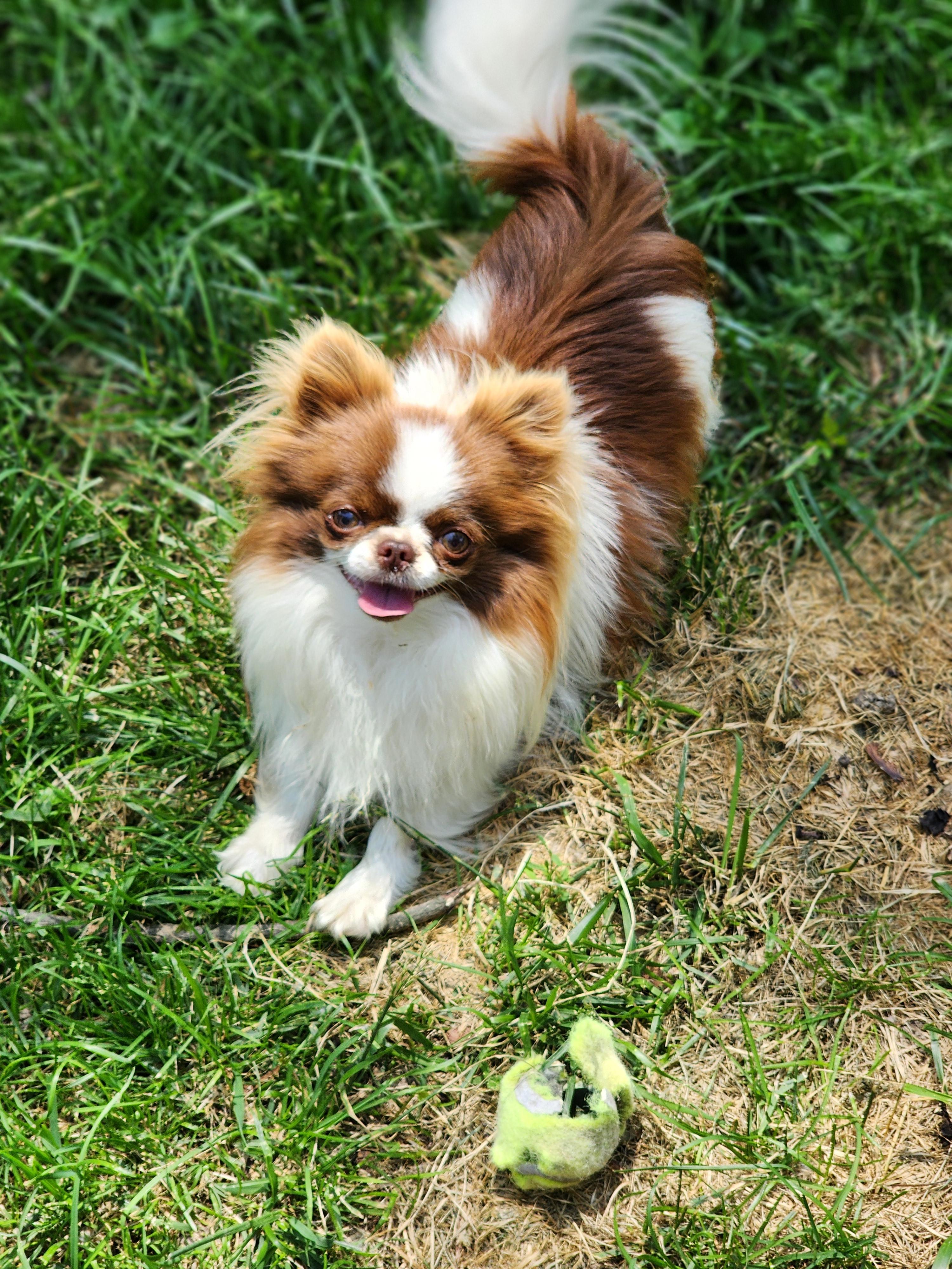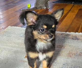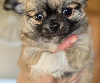 Turbo is a gorgeous AKC long coat tiny male weighing 4.5lbs. He has the sweetest personality. Loves to chase squirrels and birds. Lol. He is definitely a ladies man. Turbo is my pride and joy. DNA and health clear through embark and AKC.