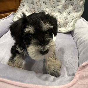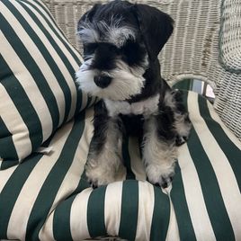 I purchased a miniature schnauzer from Samantha Morgan delivered at eight weeks. The puppy was well cared for and in excellent health. Samantha sent me weekly updates with pics and videos. His name is Jax and he is beautiful. I couldn’t be more pleased with Samantha and Gooddog. On a scale ofor one to ten the experience was a twelve. Jax is happy, healthy, and well adjusted. I have no regrets and I love my pup.