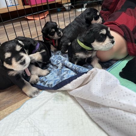 My breeding program stands out for its personalized approach, focusing on health, safety, and thorough testing for Miniature Schnauzers. Puppies are raised in a loving home environment, receiving early socialization and training. Services include vaccinations, microchip registration, and ongoing support for owners.