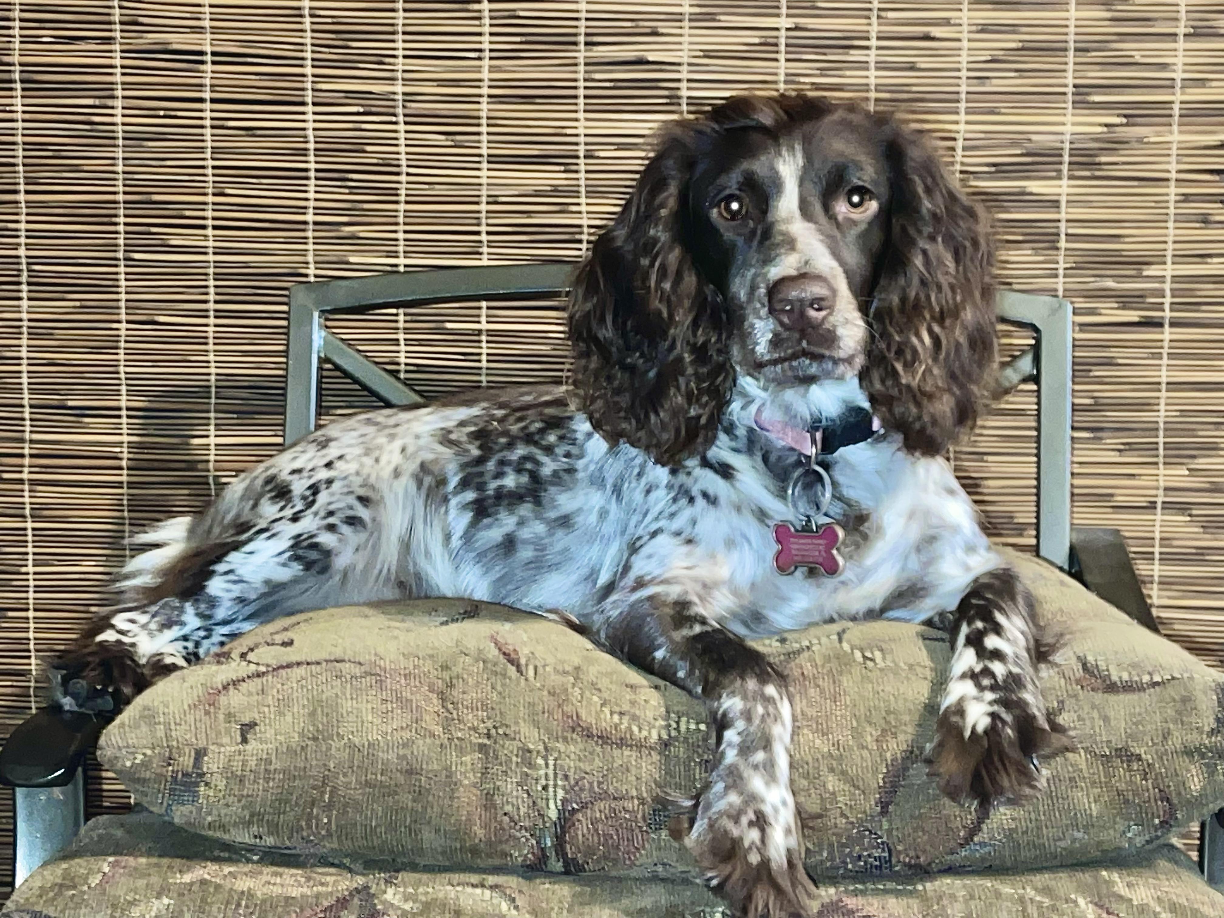 June is a female English Cocker Spaniel. Carefully selected as a great representative of her breed, Morgan decided to make her part of their program. Morgan has passed Good Dog’s screening process, which involved a review of their breeding practices, environment, and the mental and physical health of their dogs.