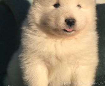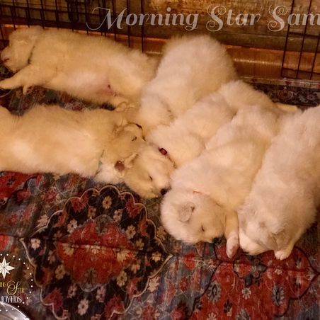 I'm Annamarie P., the breeder behind Morning Star Samoyeds located in Bear Creek, MT. Our Samoyeds are beautiful, intelligent, and highly social animals who thrive on companionship. While energetic, they are kind and gentle, making them wonderful with children of all ages. We stand by the puppies we produce with a 2 year genetic health guarantee and lifelong breeder support.