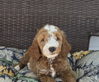 Rudy is a male Goldendoodle. Carefully selected as a great representative of his breed, Brenda decided to make him part of their program. Brenda has passed Good Dog’s screening process, which involved a review of their breeding practices, environment, and the mental and physical health of their dogs.