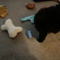 Eve is a wonderful girl! She loves to snuggle with her human kids. She likes to play with toys but really loves her snacks, she is very treat motivated and will do anything for a little snack. She has passed all of her health testing (eyes,hips and patellas)