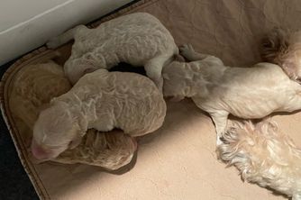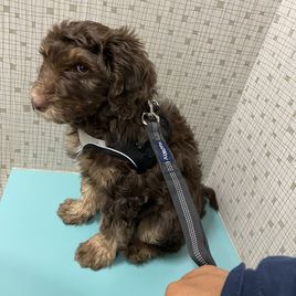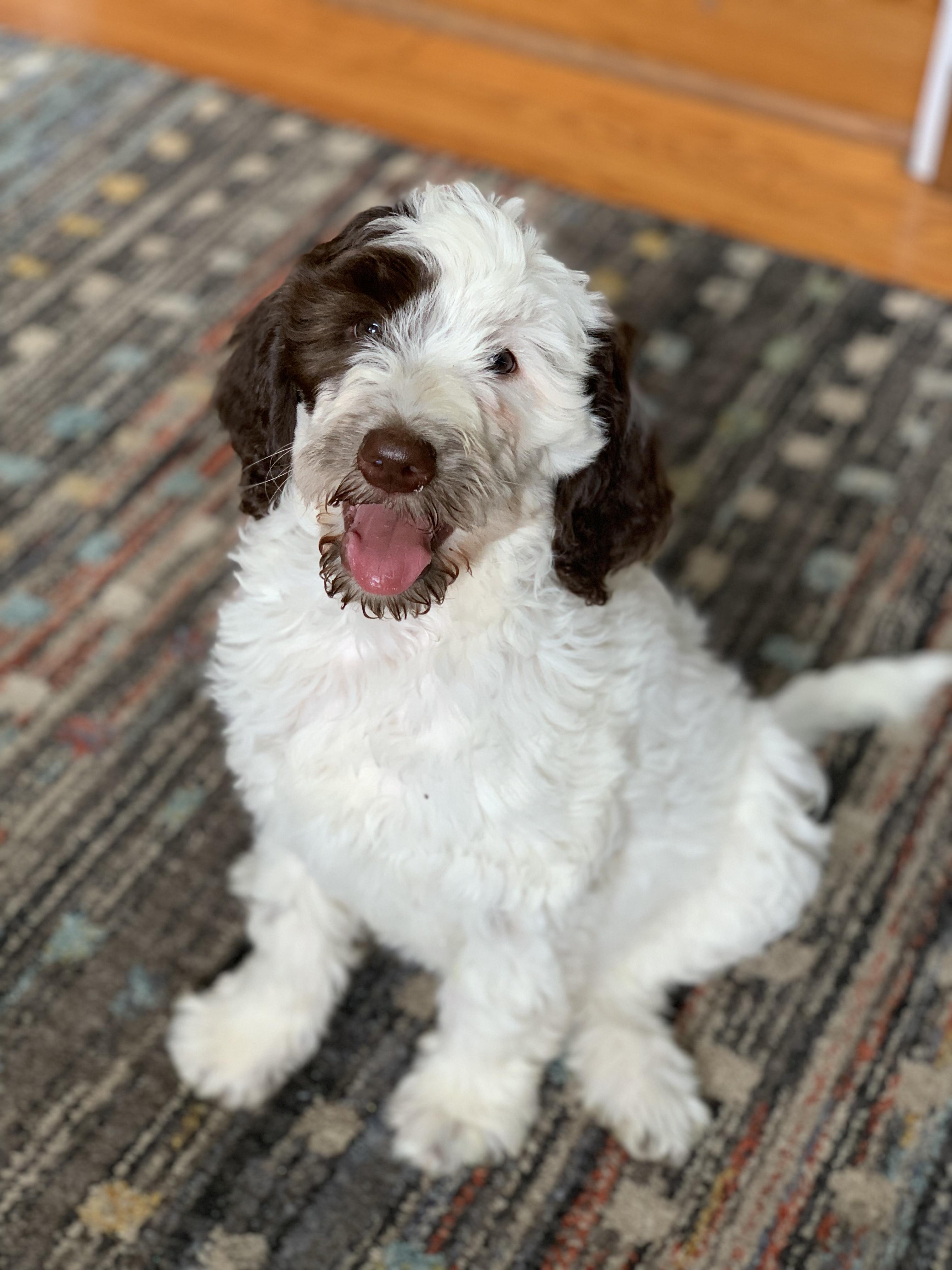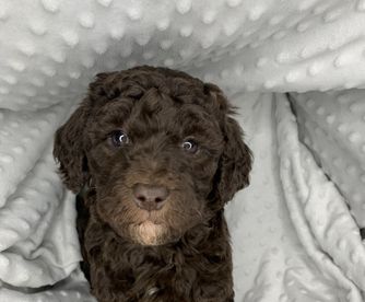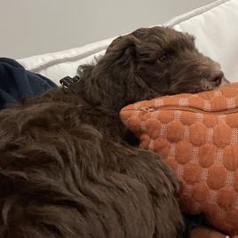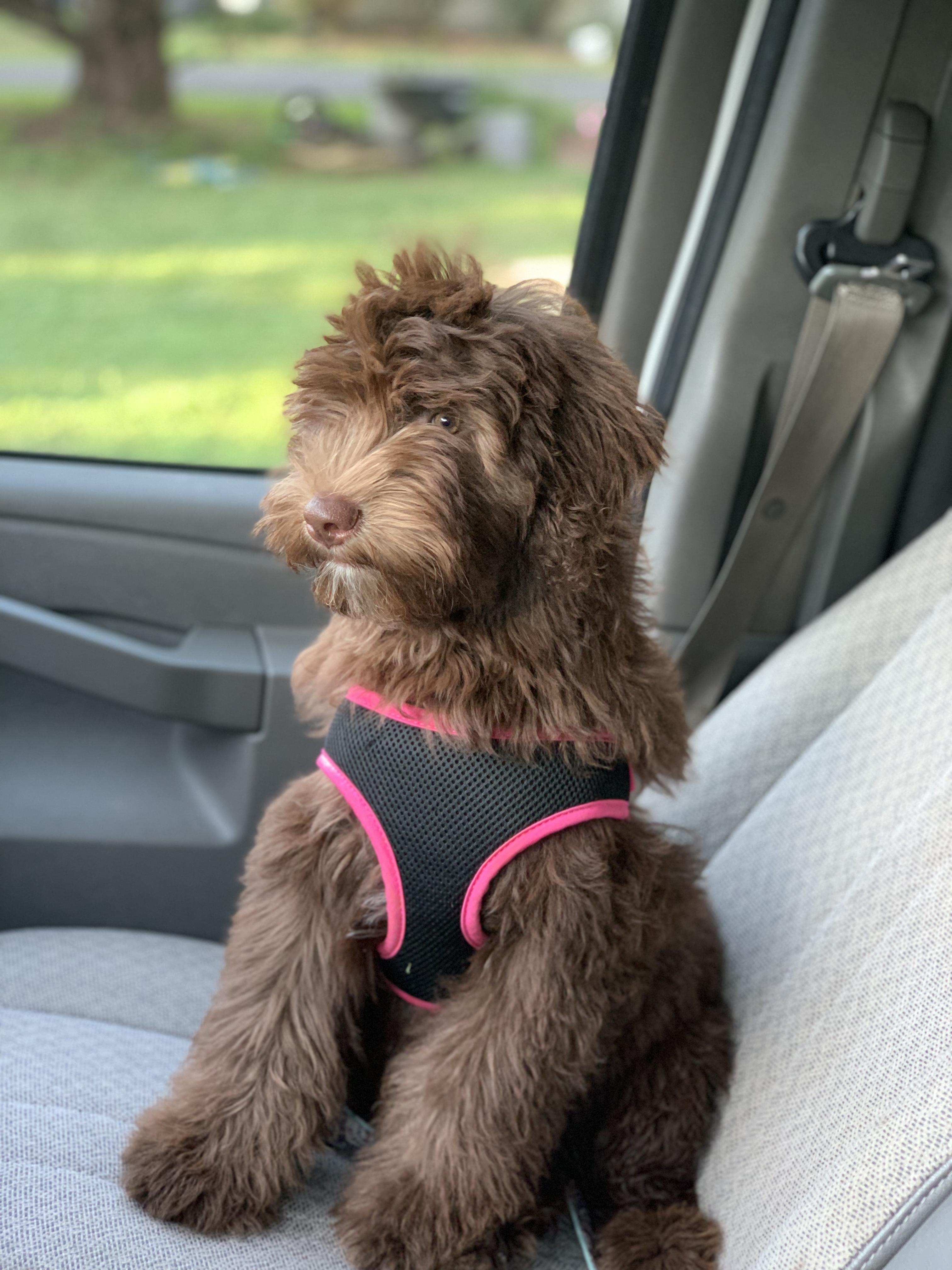 You can tell a lot about the breeder by the pet. Celeste was wonderful to work with and Poppy, now Charley, is the sweetest pup. She has gone to work with me, and our vet, and although she does “talk” to people she meets, she doesn’t take long to warm up. She’s been great with our grands, and with doodle “sister”, Chloe who is 14 1/2. She’s assimilating into our schedule, and although there have been a couple of mishaps, she’s only 4 months old. She’s a smart pup and we look forward our lives with her.