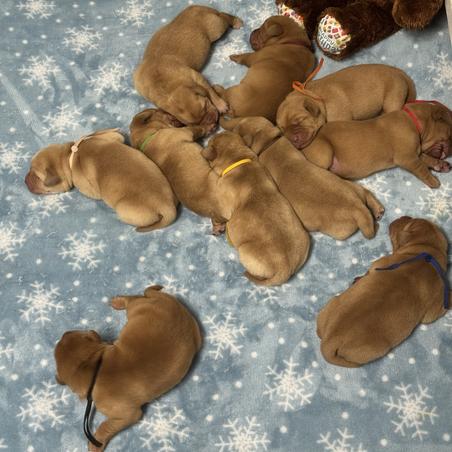 We are small and very family oriented. Our puppies are exposed to our young grandchildren from day one. With our 9 year old granddaughter even helping with whelping.