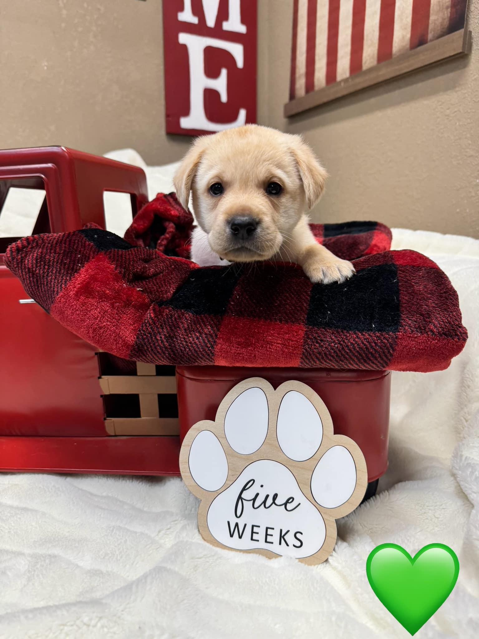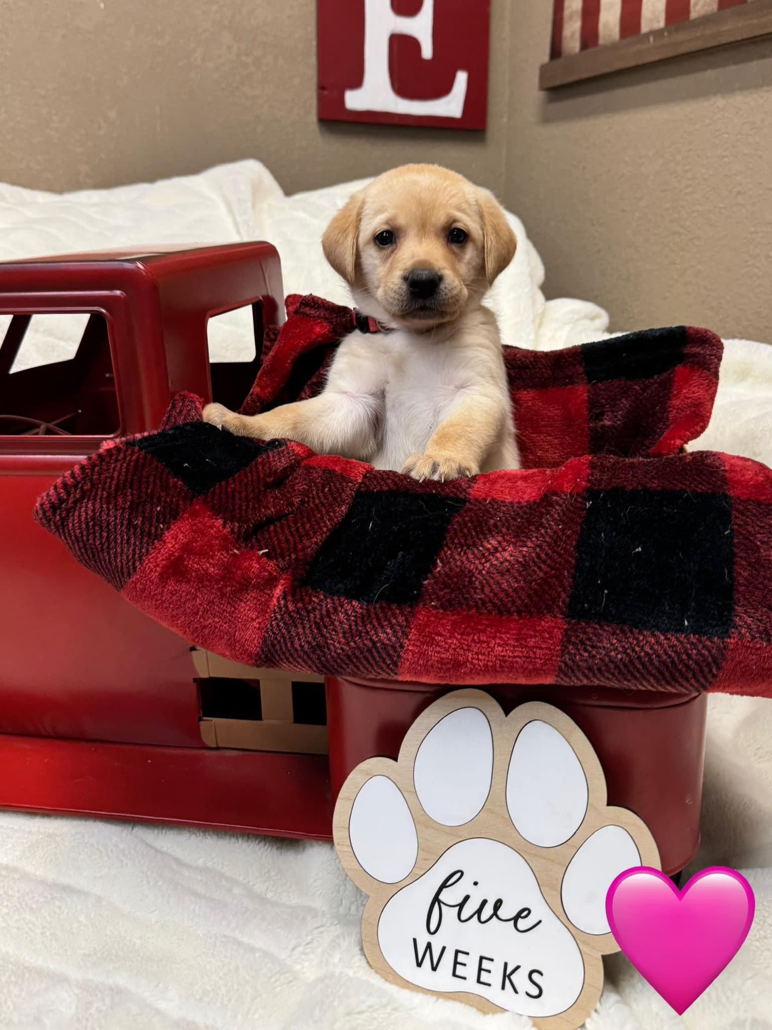 Our puppies include black, chocolate, and yellow. Colors will vary depending on the parent dogs.