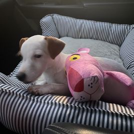 Marshall is a male Parson Russell Terrier. Carefully selected as a great representative of his breed, Melanie decided to make him part of their program. Melanie has passed Good Dog’s screening process, which involved a review of their breeding practices, environment, and the mental and physical health of their dogs.