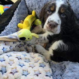 Christina was great to deal with.. brought the puppy to the airport with more than enough supplies and toys to make it all the way home with us. His disposition was exactly the way she explained. Very pleased with all aspects of getting a puppy from Mossy Creek. It’s been a few weeks now and he is a very smart puppy, very little accidents while potty training.