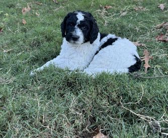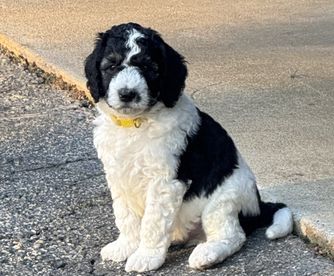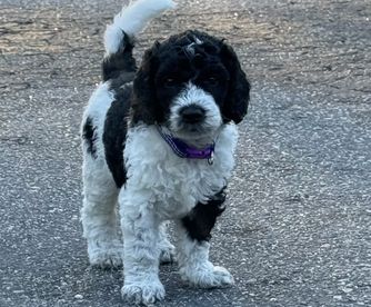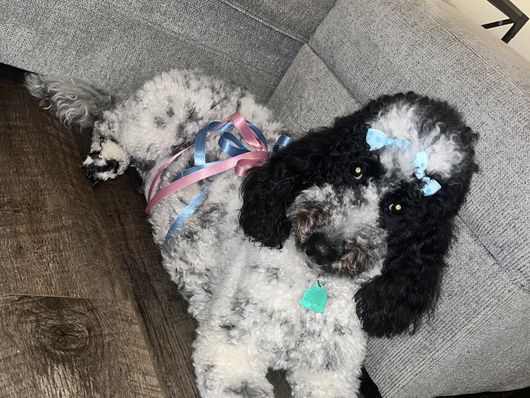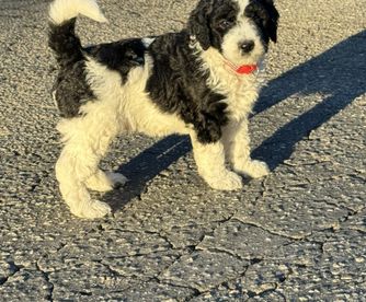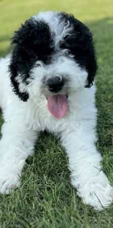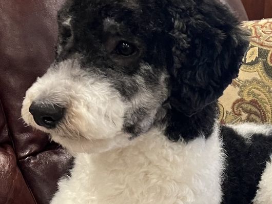 Willow is a mini Sheepadoodle that loves life. She is a happy loving girl who loves everyone she meets. Her favorite past times include car rides and cuddling on the couch getting belly rubs.