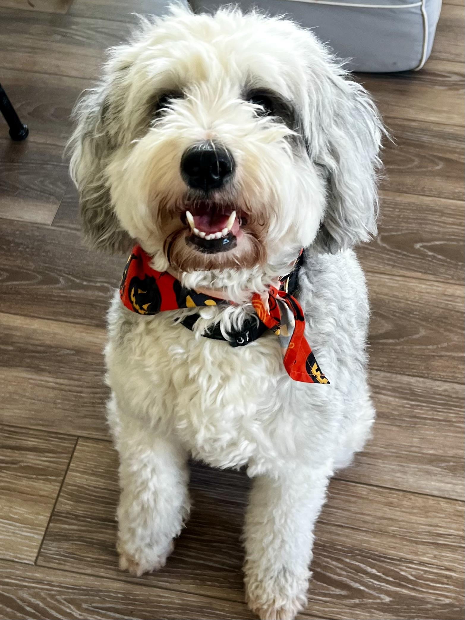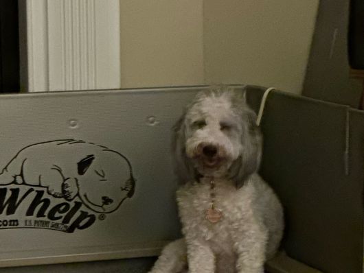 Elliott is a male Sheepadoodle. Carefully selected as a great representative of his breed, Rhonda decided to make him part of their program. Rhonda has passed Good Dog’s screening process, which involved a review of their breeding practices, environment, and the mental and physical health of their dogs.