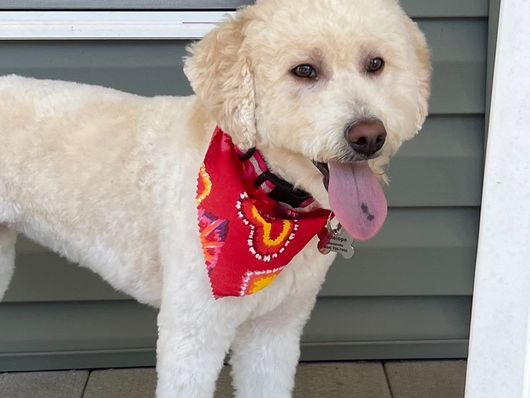 Posie is a female Goldendoodle. Carefully selected as a great representative of her breed, Rhonda decided to make her part of their program. Rhonda has passed Good Dog’s screening process, which involved a review of their breeding practices, environment, and the mental and physical health of their dogs.