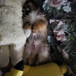 Shakira is a beautiful (standard) Blue & Tan Pomeranian. She's so smart, she's also a loving and playful companion. She knows 10 tricks, and she loves going on car rides. She has a great temperament, is also great with kids and other animals. She is in great health and has been Embark DNA screened. She is clear of All Breed related diseases as well as the other 260+ diseases she was tested for. She comes from a long line a Chic Certified Ancestors.