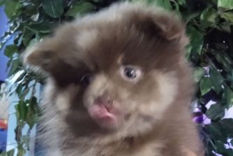 Daemon is a Georgous AKC (Baby doll) Chocolate Merle. Who has Been Heath/ Breed Certified through Embark. His loving gentle nature, and playful personality make him perfect for Siring the next generation of perfect pom companions. His Ancestors on his mother's side were OFA certified for their hips. His vet has also expressed how impressively sturdy Daemon's hips are.