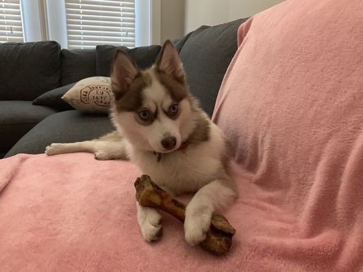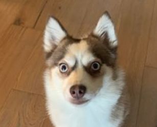 Scotchy is a male Pomsky. Carefully selected as a great representative of his breed, B decided to make him part of their program. B has passed Good Dog’s screening process, which involved a review of their breeding practices, environment, and the mental and physical health of their dogs.