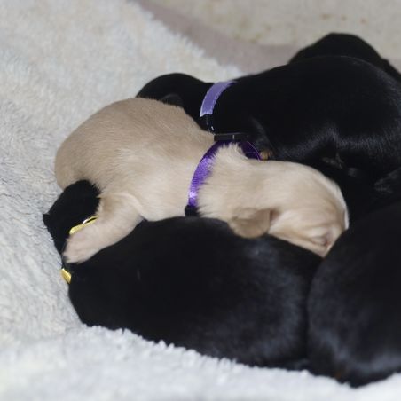 Our Dachshund puppies include cream, black and cream, black and tan, and dapple. Golden Retriever puppies are light golden. Colors will vary depending on the parent dogs.