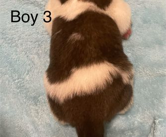 Our puppies are brown and white. Colors will vary depending on the parent dogs.