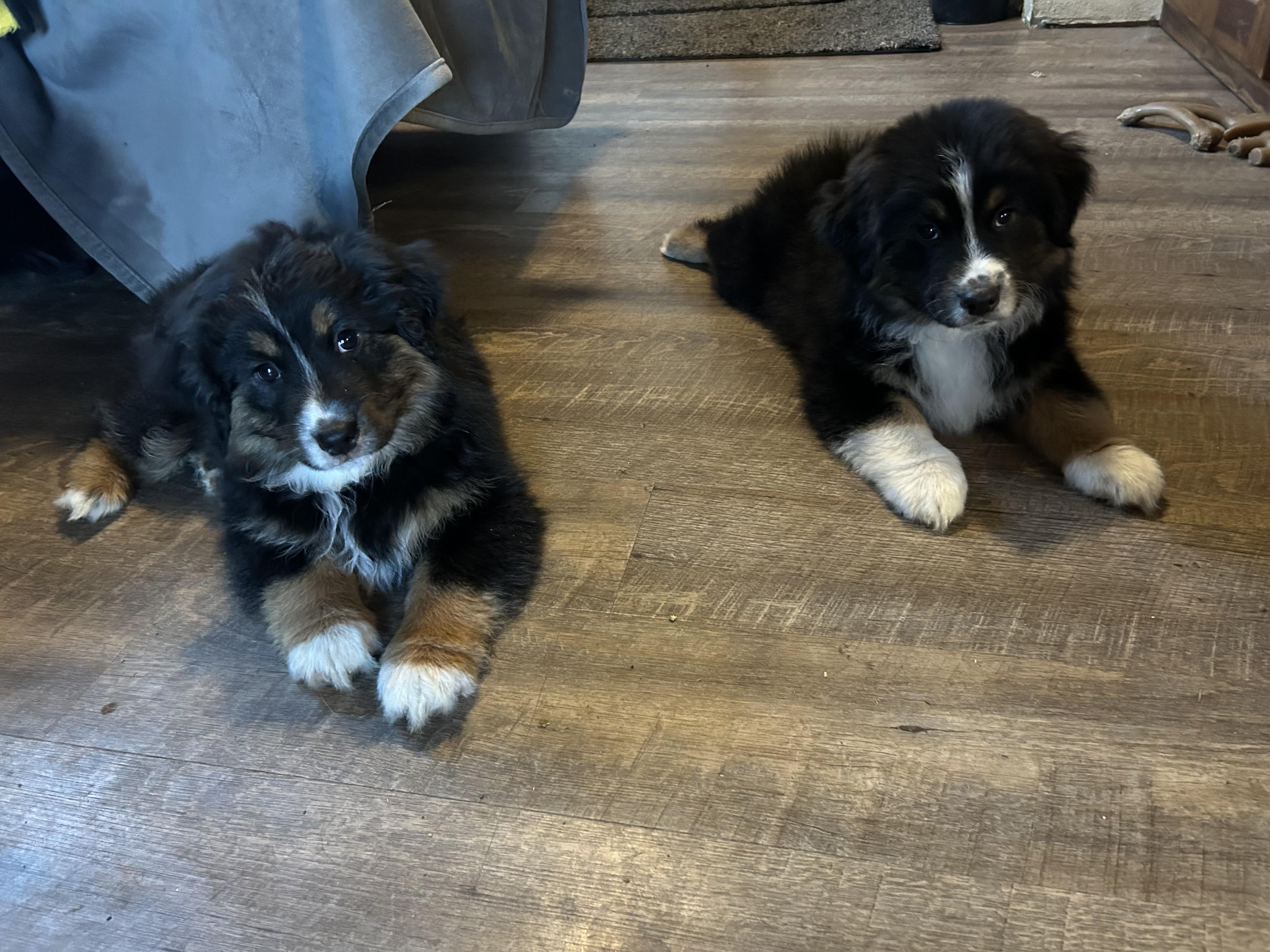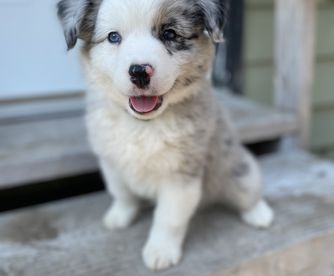 Our puppies include red tri-color, black tri, red merle, and blue merle. Colors will vary depending on the parent dogs.