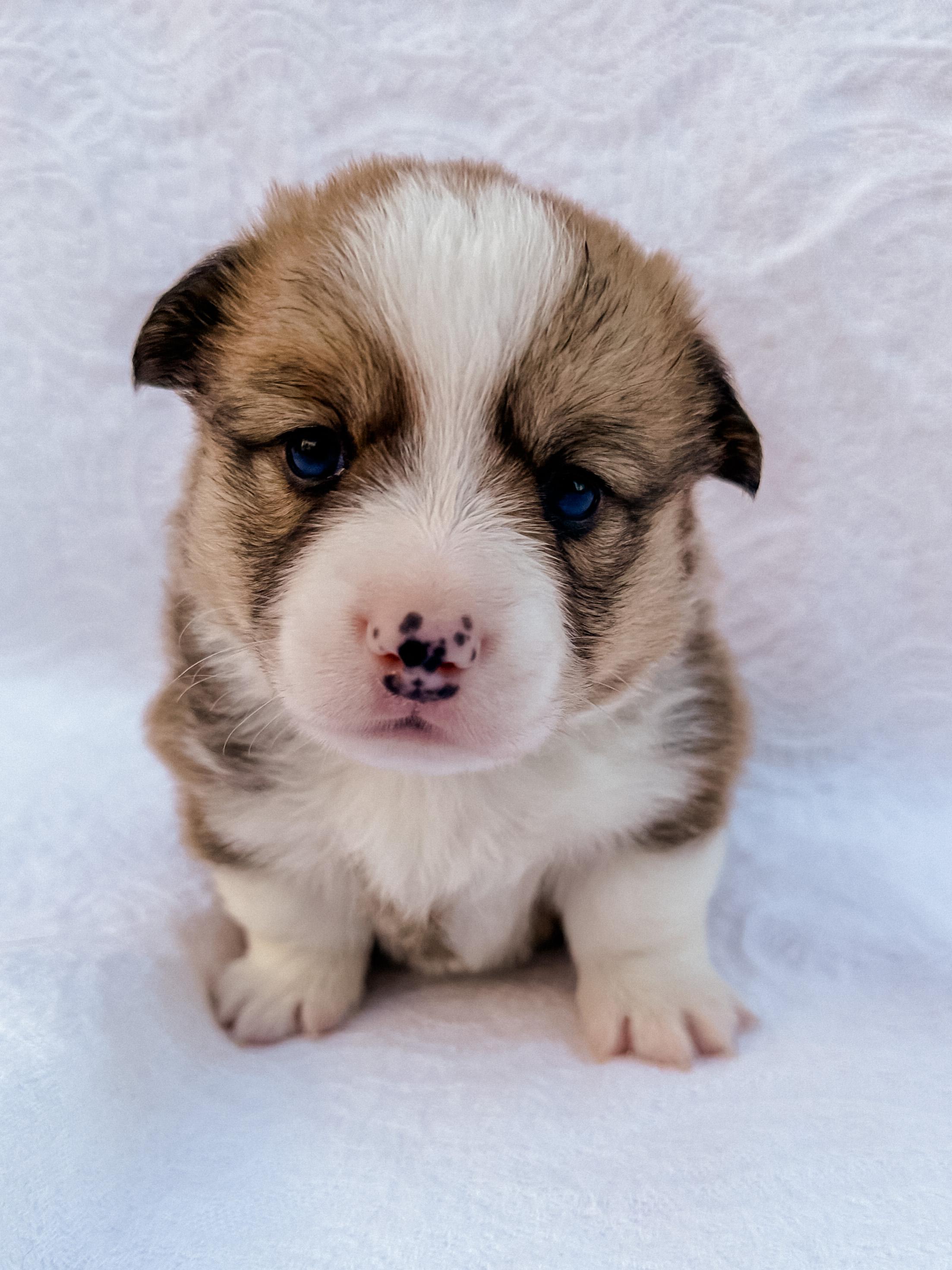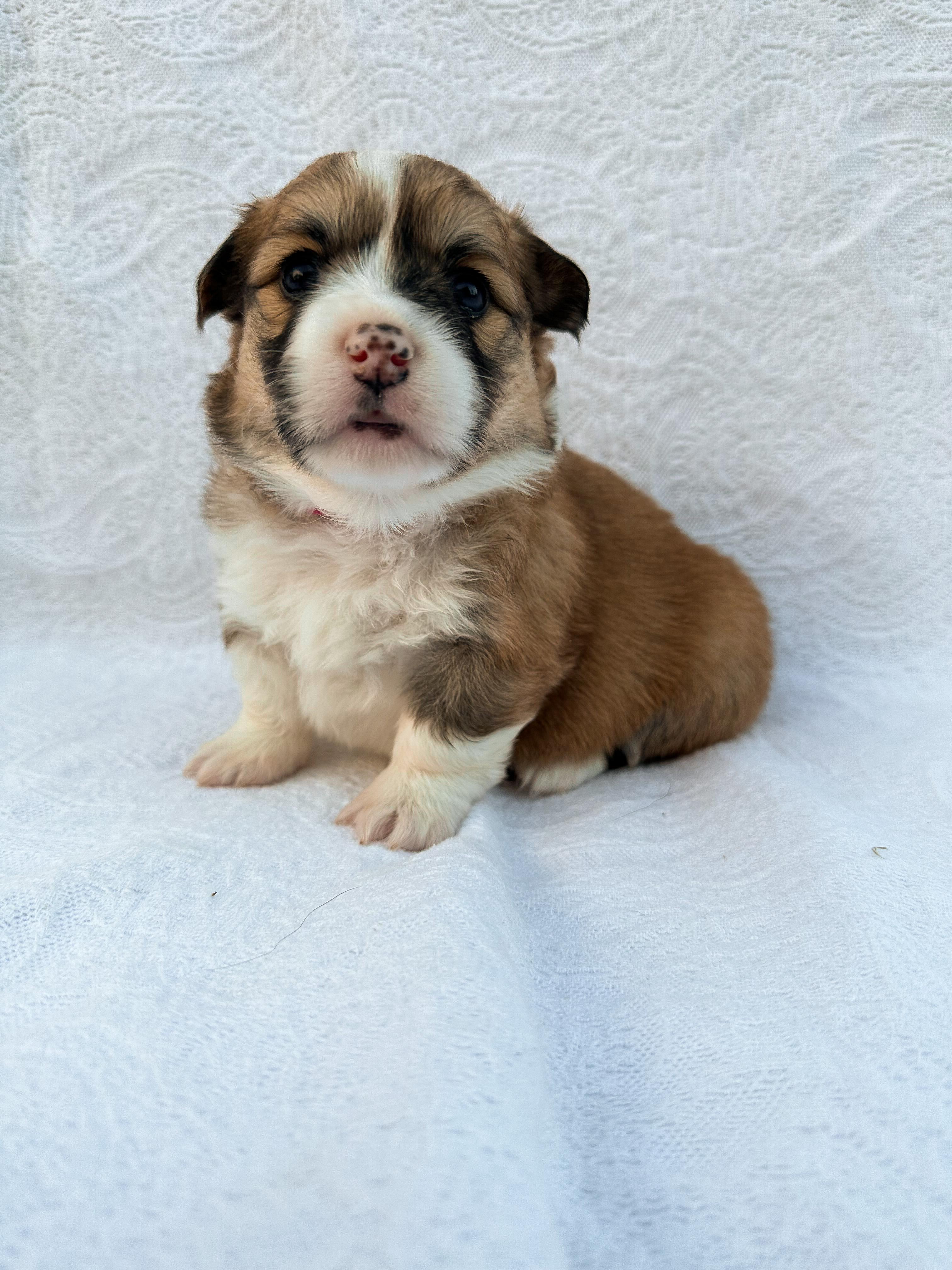 Jubi is a beautiful example of a high quality, breed standard corgi. She has a very gentle, people oriented, loving personality. She is a wonderful mama and a loved member of our family. She has nice short thick legs. She is low and long with the best corgi personality around!! She is constantly at my side.