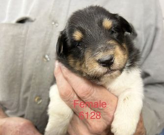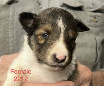 Our Russell Terrier puppies include white and black and white and tan. Shetland Sheepdog puppies include white and sable, sable merle and white, blue merle white and tan, black white and tan, and sable and white. Colors will vary depending on the parent dogs.