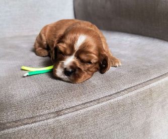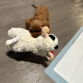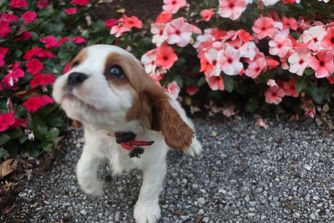 Our puppies include blenheim, ruby, tri-color, and black and tan. Colors will vary depending on the parent dogs.