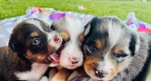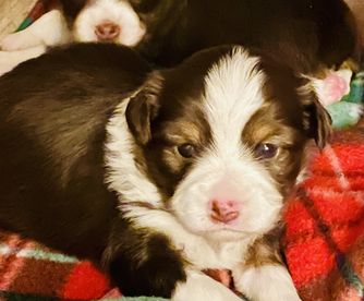 Our puppies include black, red, and blue merle. Colors will vary depending on the parent dogs.