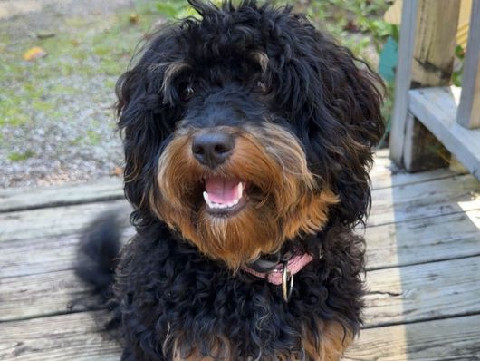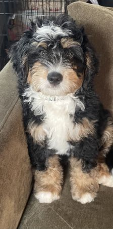 Febee is a gorgeous tri mini Berniedoodle. She is so joyful and sweet! She is genetically clear and 25 lbs