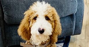 Franklin is a handsome Red Abstract Hidden Merle Goldendoodle