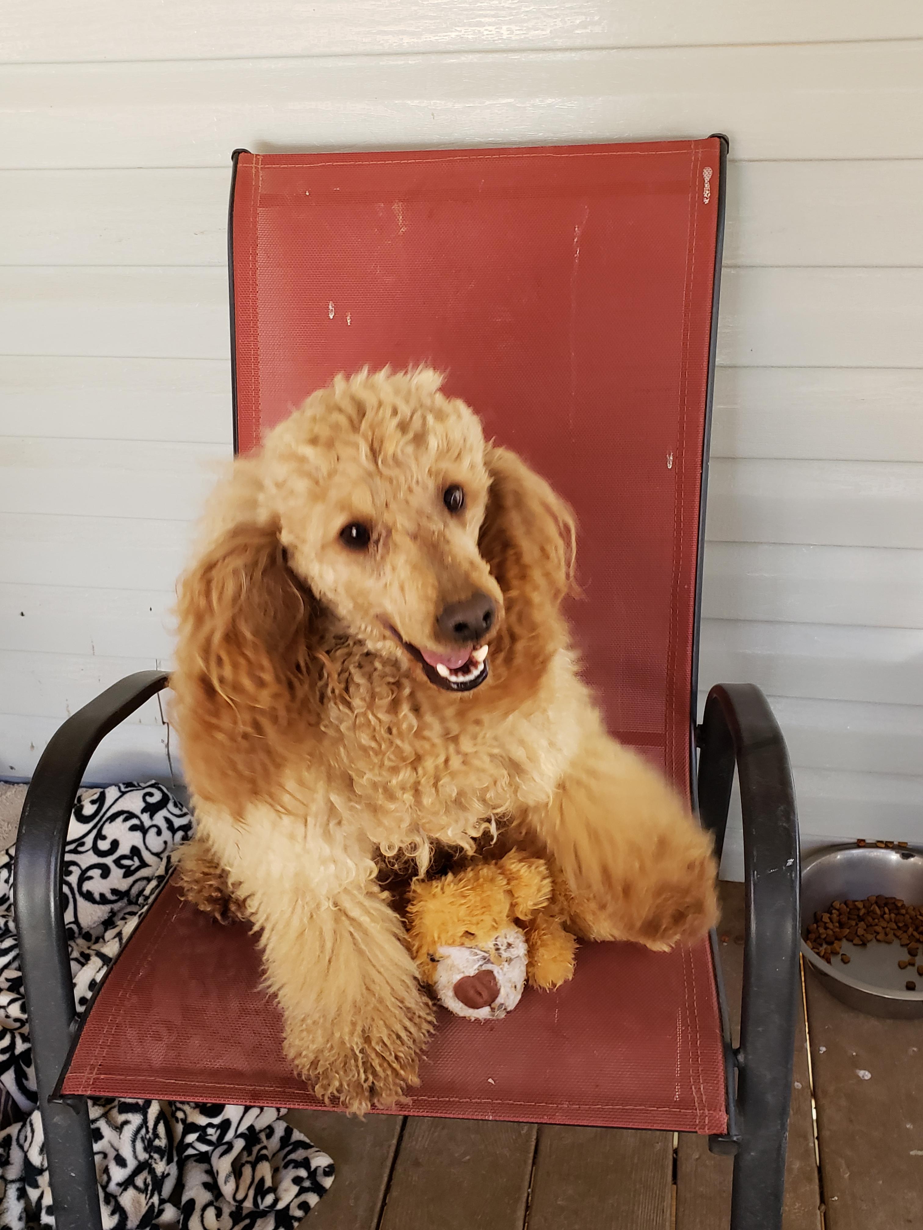 Rooster is a male Poodle. Carefully selected as a great representative of his breed, Linda decided to make him part of their program. Linda has passed Good Dog’s screening process, which involved a review of their breeding practices, environment, and the mental and physical health of their dogs.