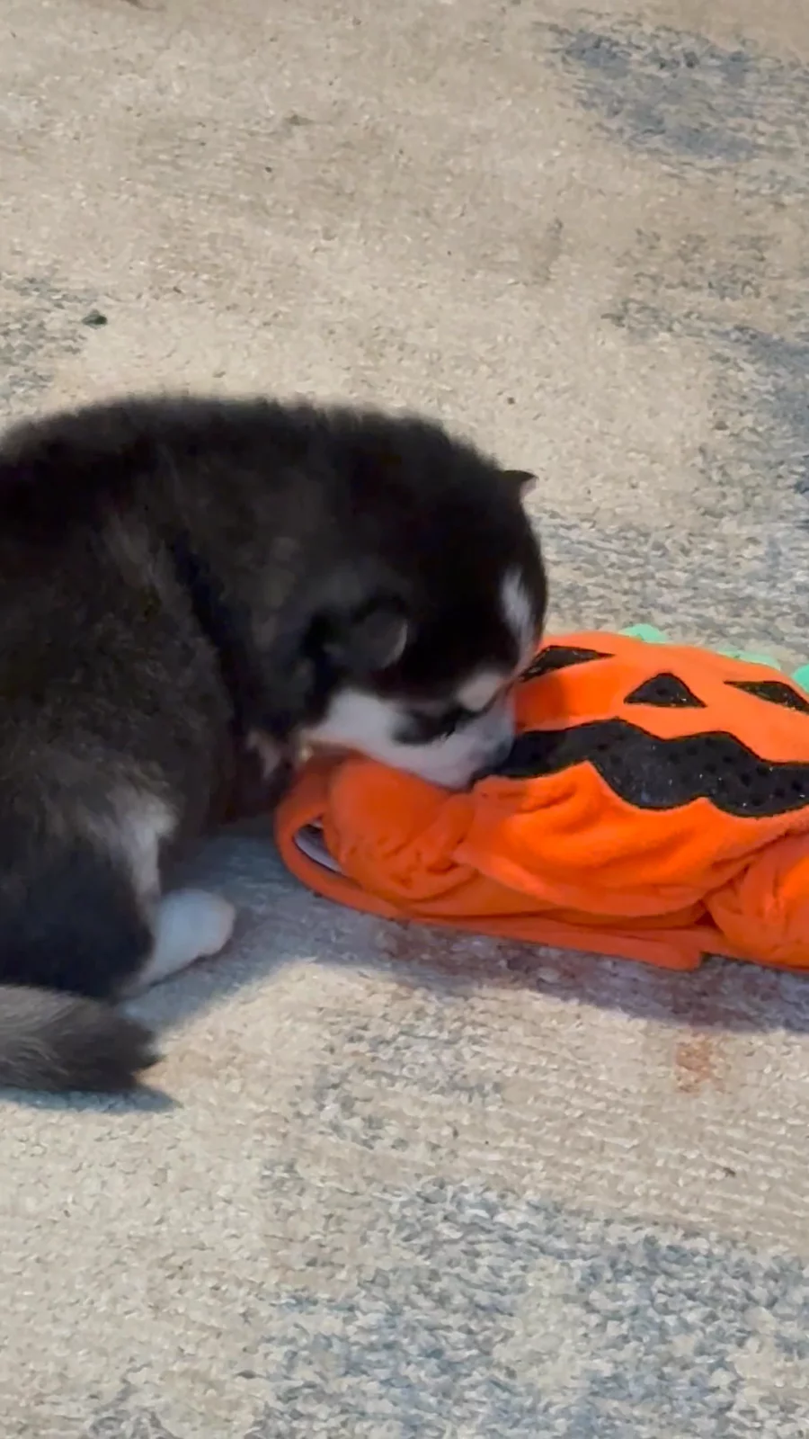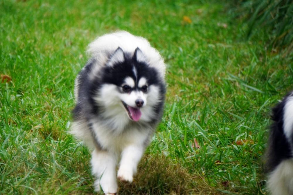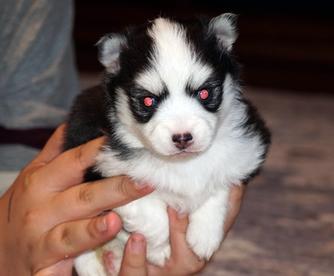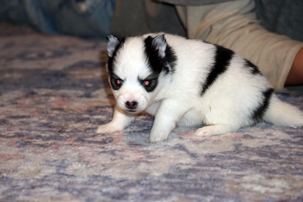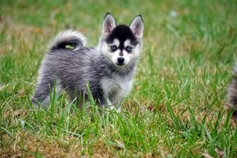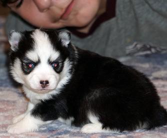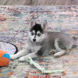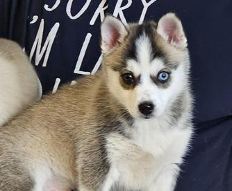 Pomsky puppies are toy size. Sizes will vary depending on the parent dogs.