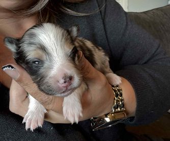 Our Toy Shetland Sheepdog puppies include sable & white, sable, black & white, and blue merle. Shetland Sheepdog puppies include white blue merle, white black and tan, white and sable merle, sable merle and white, black and white, sable and white, blue merle white and tan, blue merle and white, and black white and tan. Pomsky puppies include gray and white, black and white, and merle. Rottweiler puppies include black and rust and black and mahogany. Colors will vary depending on the parent dogs.