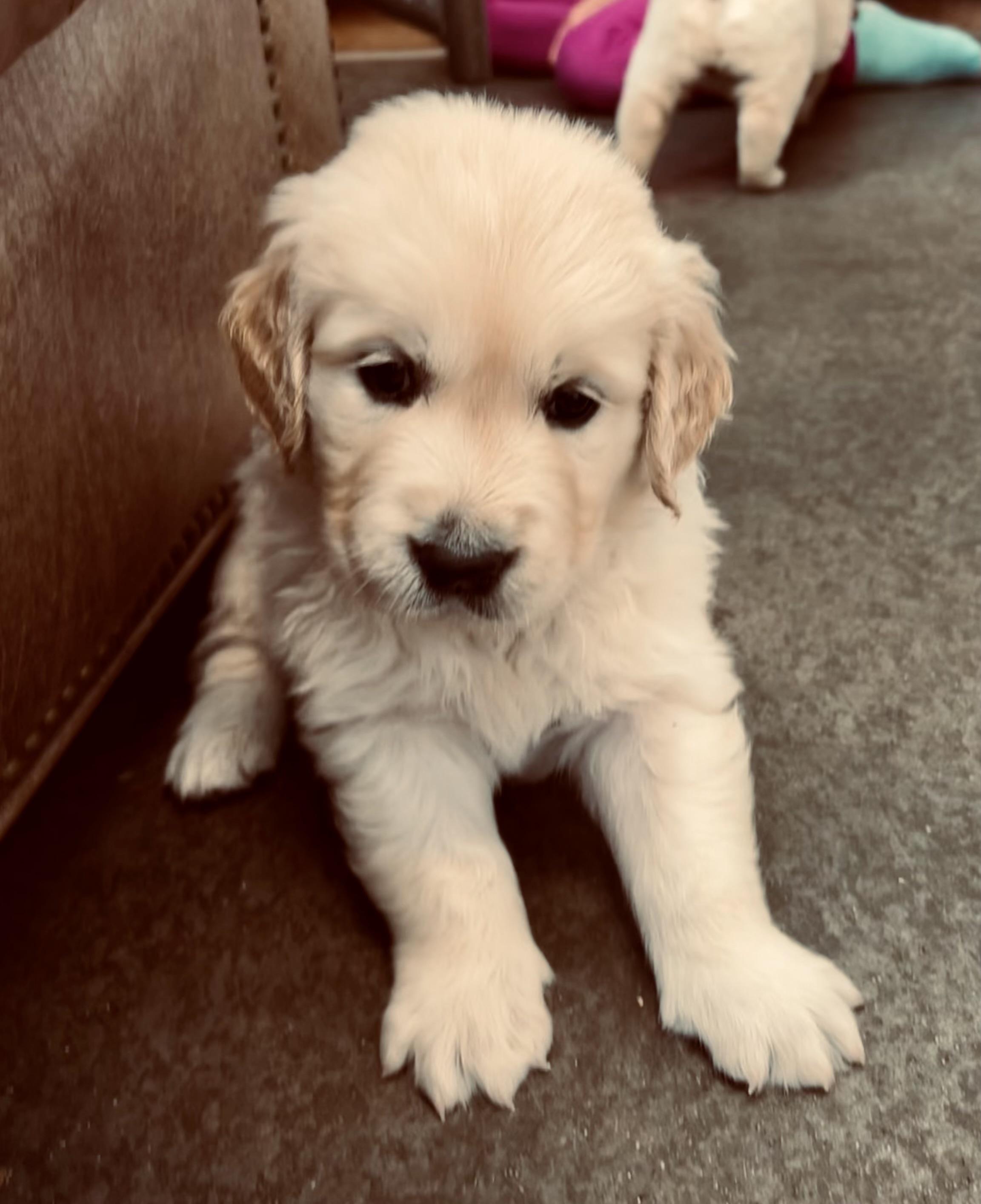 Our puppies are light golden. Colors will vary depending on the parent dogs.