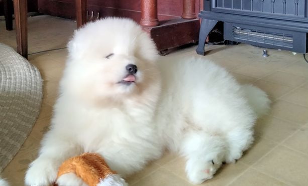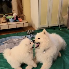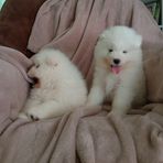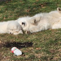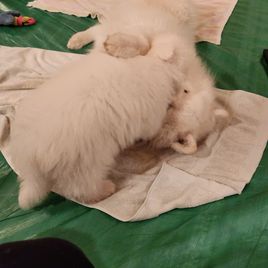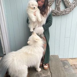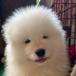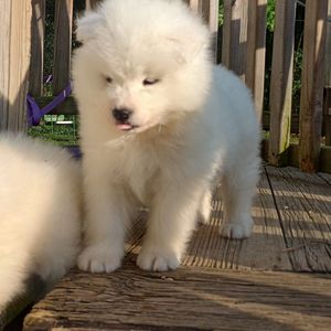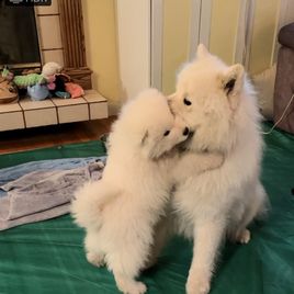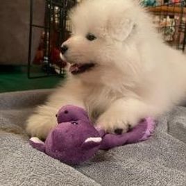 What first attracted me to Mary, the breeder/owner of Mt Laurel Samoyeds, was the beauty of her 2 samoyeds. Radzha and Kaya are 2 of the most beautiful Samoyeds I have ever seen. Then after putting down a deposit for a puppy, we got frequent pics and updates on Kayas pregnancy, including pics of the growing mamma. Once the puppies were born, Mary sent frequent and very detailed updates on everyone's progress, including mamma Kaya. At about 4 weeks old Mary then started sending pics, videos, and detailed characteristic traits about each puppy. She was in constant contact with us throughout the puppies 8 weeks with her. On the day of pick up, we were welcomed in and got to meet, mamma, and poppa and the litter. It was one of the best puppy adoption experiences I have ever had. And our puppy....she is the most beautiful little fur baby. Her hair is the softest I have ever felt on a Samoyed. Her personality is loving, snuggler, but with so much spirit and toughness about her!! She and our 1 yo male Samoyed are already inseparable and love each other so much. He doesn't leave her side. And she is absolutely stunning!!! I couldn't be happier!! Thank you so so so much Mary, for all that you have given us and to Kaya and Radzha for sharing your beautiful baby girl with us. Carol Pable