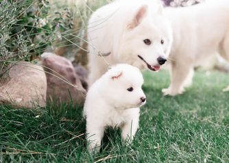 Our Samoyeds are not just pets — they are part of our family, raised with love, care, and daily interaction on the homestead. Thus, they are great with people, small children & other animals! Our goal is to give each puppy the best start to life in a nurturing environment - surrounded by children, play, and affection. Our dogs receive proper handling, training & grooming on a daily basis.