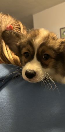 Louie is your typical CC (corgi clown) and will keep you laughing. He’s active and energetic, but also loves a good cuddle. He is a red bluie.