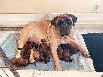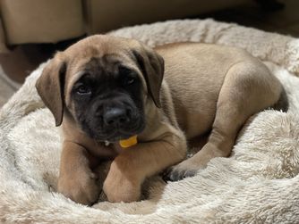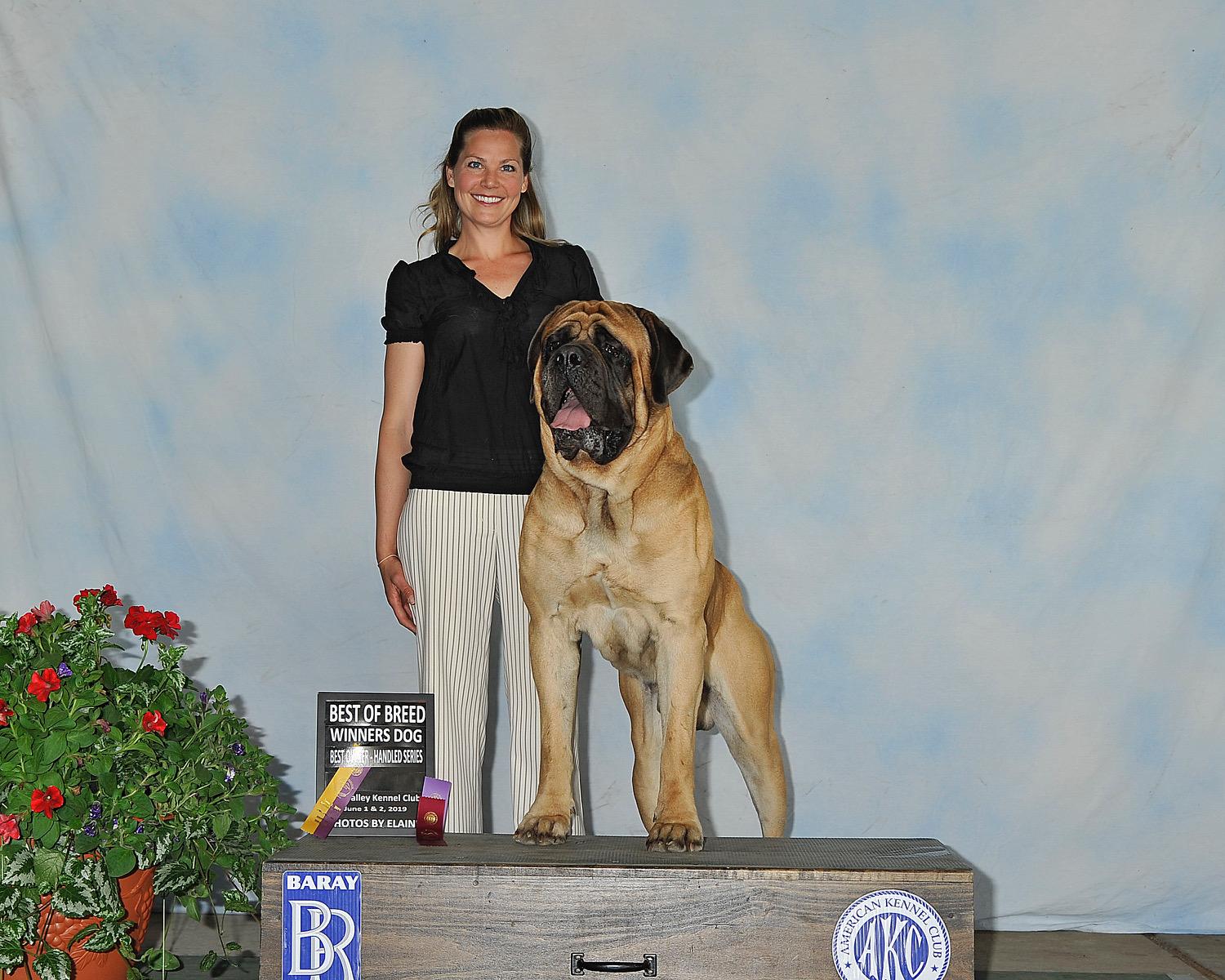 Dudley is a male Mastiff. Carefully selected as a great representative of his breed, Kate decided to make him part of their program. Kate has passed Good Dog’s screening process, which involved a review of their breeding practices, environment, and the mental and physical health of their dogs.