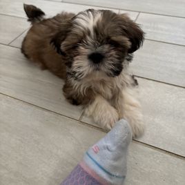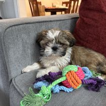 I had been searching the Internet for a Shih Tzu puppy for nearly a year when I hit upon Good Dog and Shannon. I wanted to be sure that my future pet was healthy, well-socialized and from a reputable breeder. Shannon is a knowledgeable breeder who gives her mom and pups the best possible environment and care. When it came to selecting a puppy, she provided the information I needed to make the perfect match and went out of her way to make a seamless transition for me and for “Eva.” Now we are home, and Eva’s outgoing and happy nature as well as her robust good health have me in stitches much of the day: hence her new name, Stitch. I’m so thankful to Shannon and Mountain Pass Barn for my adorable new fur baby.