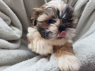 I'm Shannon T., the breeder behind Mountain Pass Barn located in Troutville, VA. MountainPassBarn dot com for detailed description. Shih tzu with excellent pedigrees including Ukraine TUKU for diversity & AKC USA show lines 2+ generations back. Clear Eyes, patellas, cardiac, and more. I also dabble in dalmatians. Dam+Sire: clear CAER eye exam; Dam: clear BAER hearing exam.