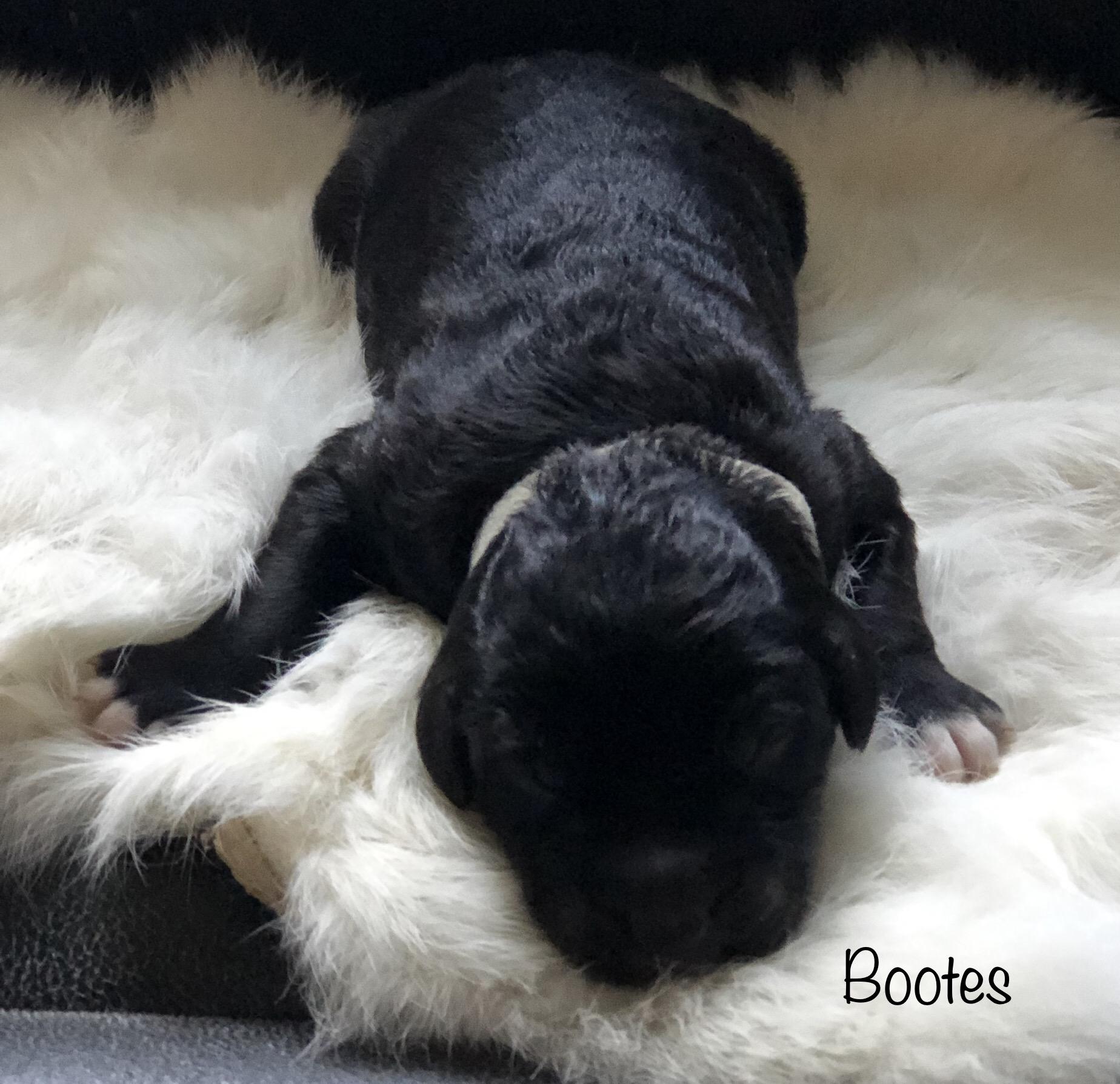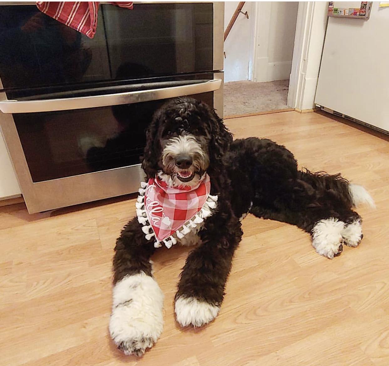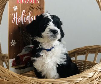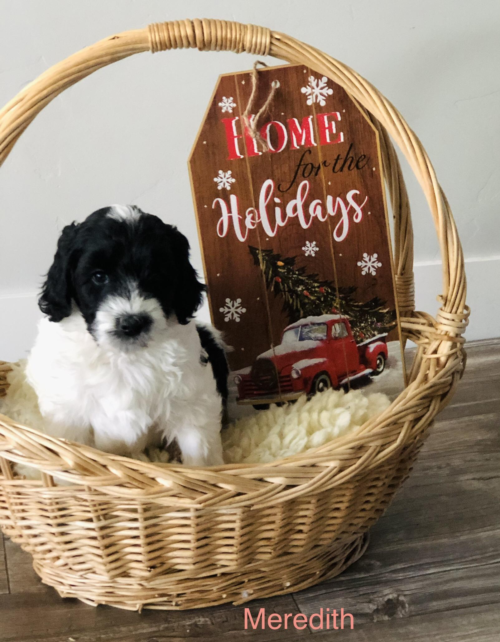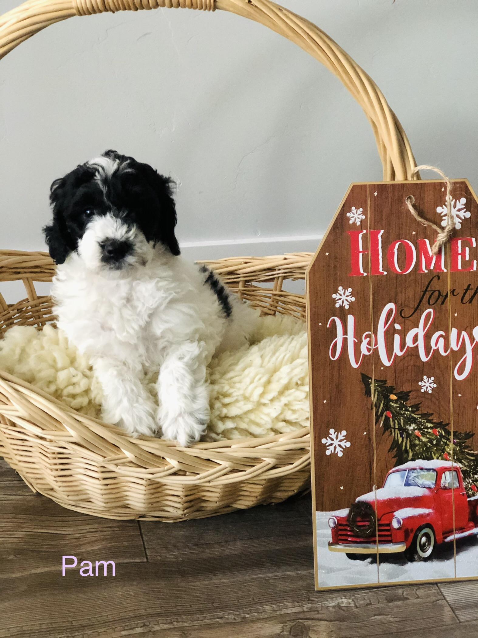 Aussiedoodle puppies include black phantom, black and white, and black tri-color. Bernedoodle puppies are tri-color. Colors will vary depending on the parent dogs.