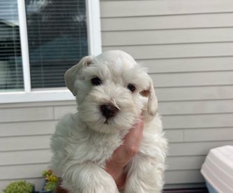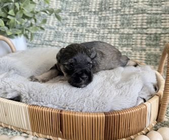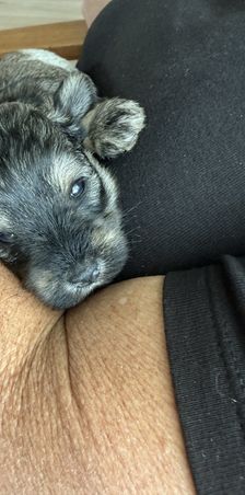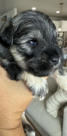 Melissa was extremely helpful with the whole process, always sending me updates, photos and even a schedule that will help my puppy feel more comfortable! Since having Arlo not only me but people around me as well have noticed how well bred he is not only that but his mannerisms too. He is the sweetest boy and I’m so thankful to Mellisa for helping me through this journey! I definitely see myself getting another schnauzer from her in the future!