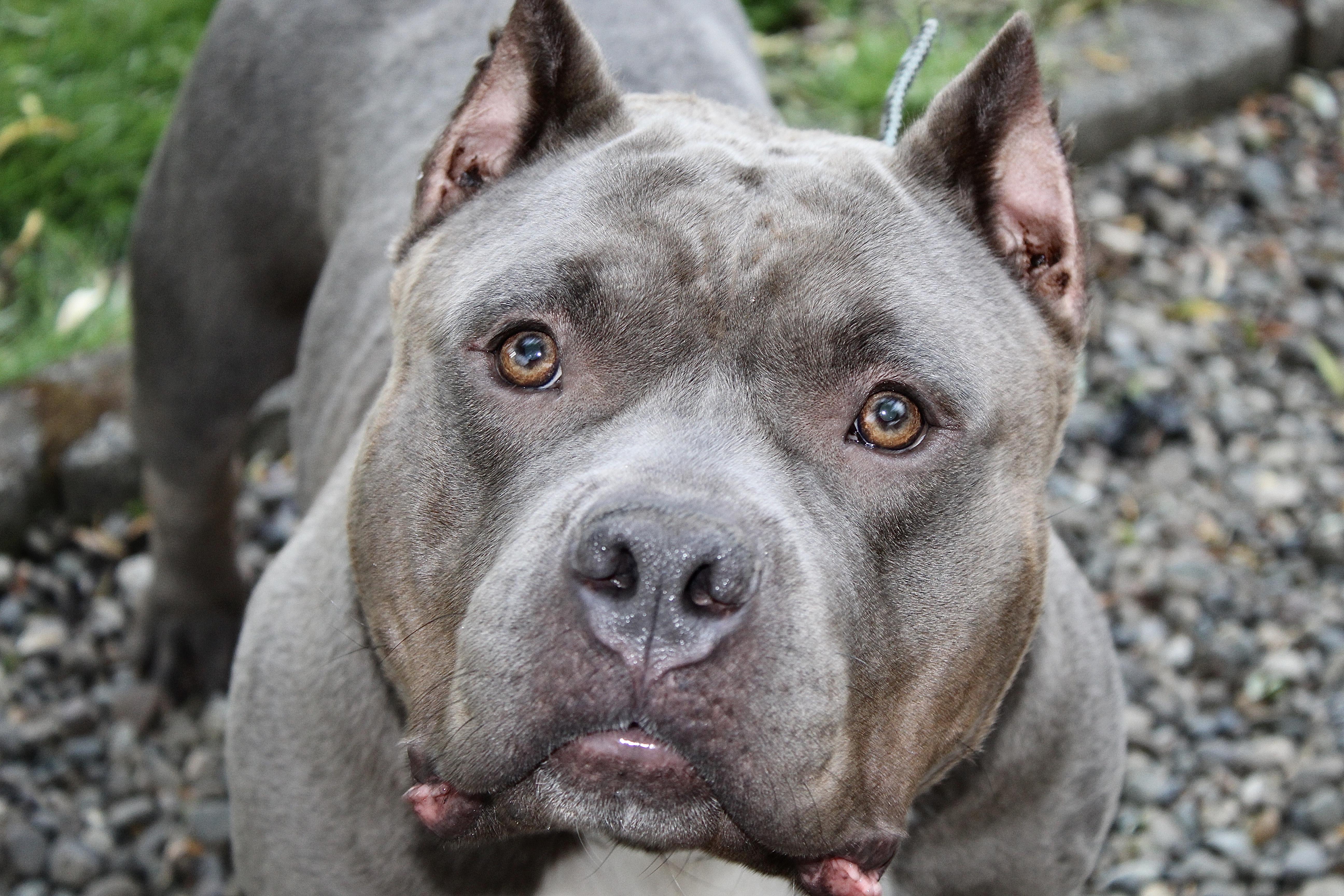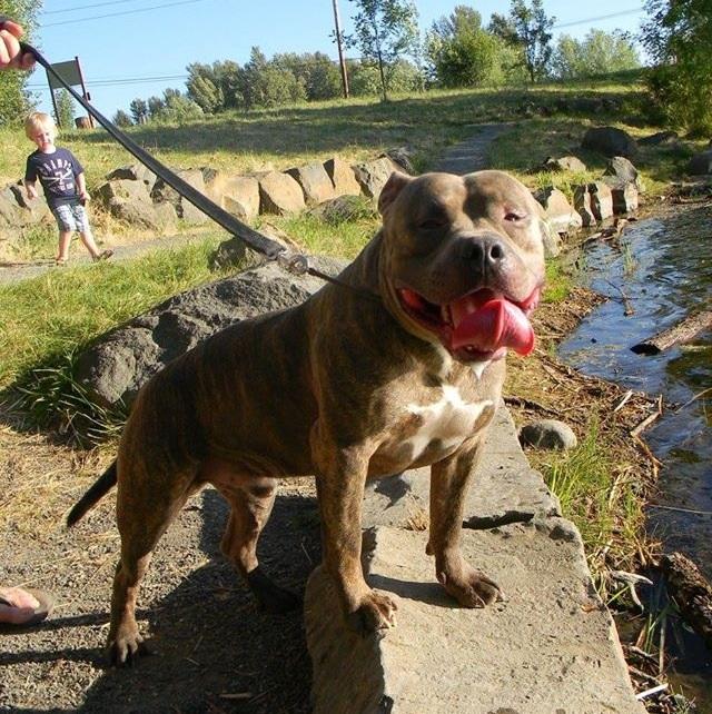 I'm Liz P., the breeder behind Mountain Pride Bullies located in Toledo, WA. Our dogs are family companions first and foremost. We strive to produce a healthy, functional, friendly, family-oriented American Bully with thick bone, blocky heads, blocky muzzle & lots of muscle. Our dogs do well in the conformation show circuit and we have even done some weight pulling.