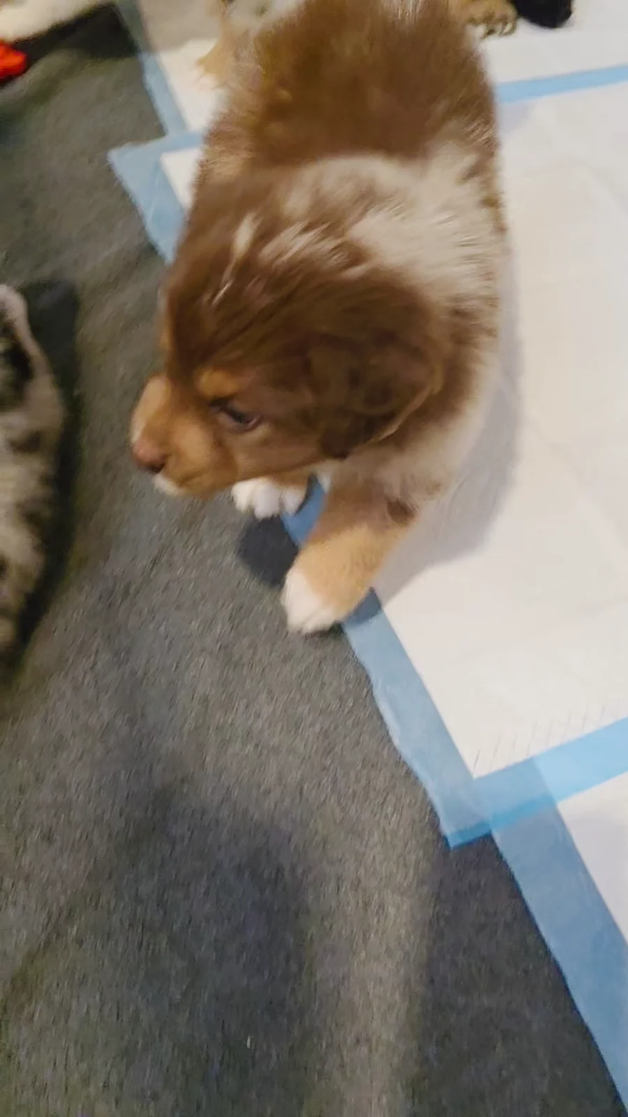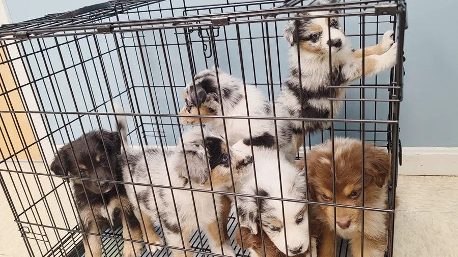 Our puppies include red merle, blue merle, black tri-color, and red tri-color. Colors will vary depending on the parent dogs.
