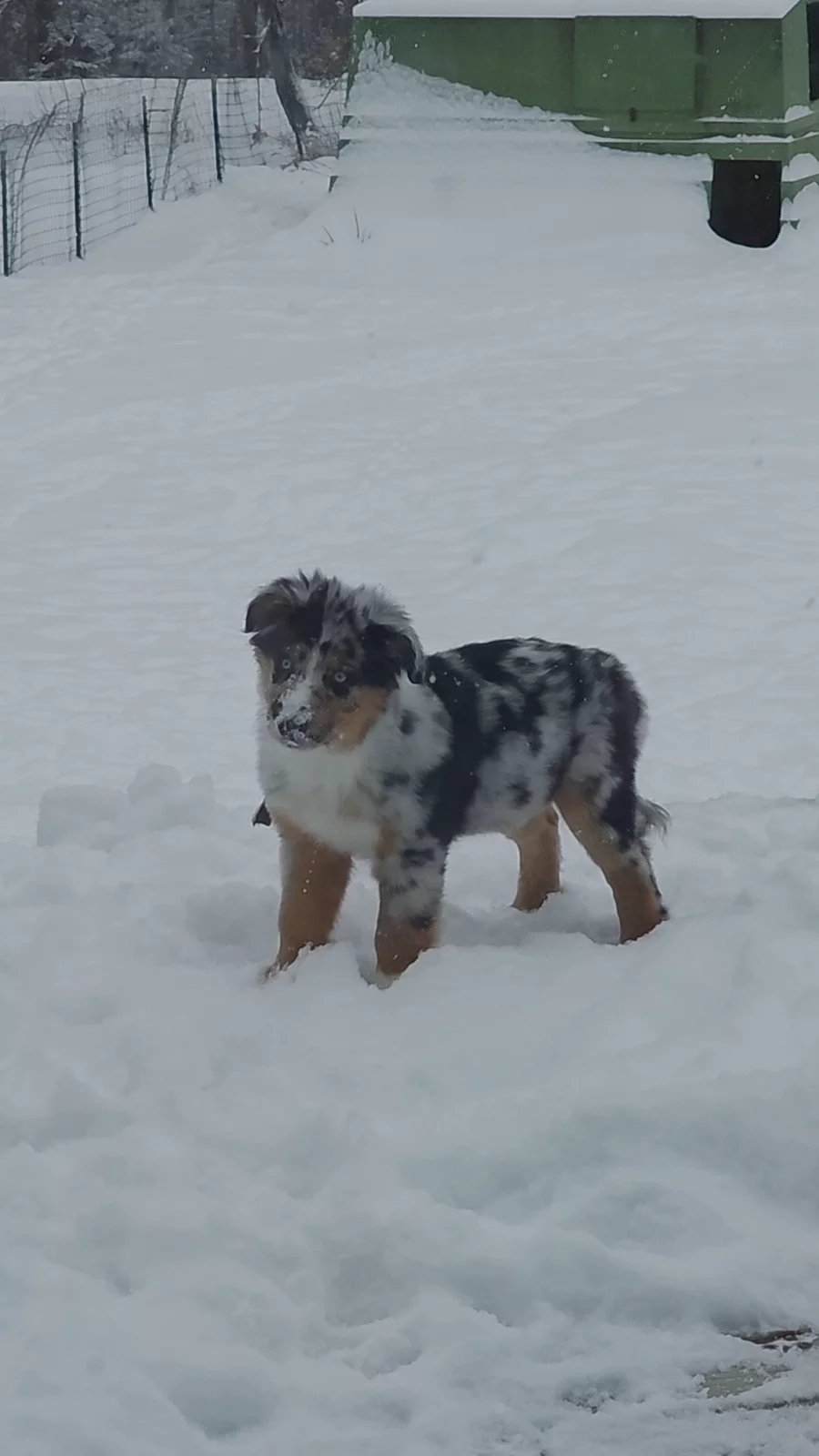 Hands down my favorite female we have. She's very loyal to her family, and has been a wonderful mother, she certainly has more of a guard dog behavior amd will alert us of people at the house but she's the first one to choose lounging around the house and laying at my feet vs playing outside. Not looking for attention just wanting to be close by. She's the biggest of our females and is a low energy aussie most times but can get quite playful with her pup babies until she tells them enough and she goes to lay in her crate.