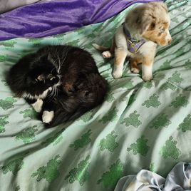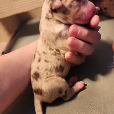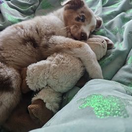 Heather was great and very responsive she was very nice and very easy to talk to and so organized. We were able to setup a meeting to meet him and she held him for a couple weeks while we got our house ready and the transaction was super quick and easy. Barracuda was shy at first but quickly warms up to new friends. He really lives up to his name and cuddles like a chainsaw, but he’s so sweet and so smart and bonded to our family very quickly. He loves to run and go for walks and runs with his older sister. He’s been filling out and is much taller than when we picked him up! He’s quick as a whip and has learned to open gates and doors and his kennel latches. We love our Bear so much!