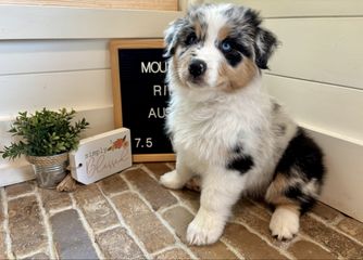 I'm Jill H., the breeder behind Mountain Ridge Aussies located in Murrayville, GA. Being able to raise exceptional, well-rounded companions is the goal we strive to achieve. All of our puppies are raised in our home with all the love and socialization they need to succeed. With children, dogs, and other small animals part of their everyday lives, our babies leave with a confident foundation.