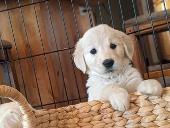 I was Leary of a third party to find a puppy, but actually my vets recommended Good dog, one of my vets uses you, I had a great experience , Sandra was so easy to work with and her puppy is beautiful, we love our Esther, she is such a great pup, feisty and gets along great with our other two , i would use good dog again, and i would go back to Sandra for a golden, he dogs are beautiful