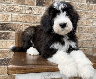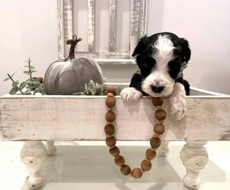 Cruella is a female Sheepadoodle. Carefully selected as a great representative of her breed, Barbara decided to make her part of their program. Barbara has passed Good Dog’s screening process, which involved a review of their breeding practices, environment, and the mental and physical health of their dogs.